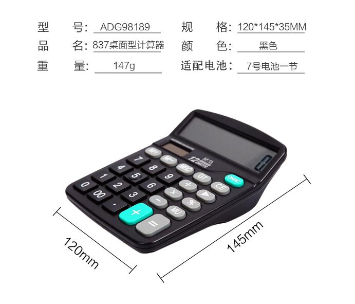 晨光文具837太陽能計算器商務(wù)型辦公用會計專用科學商用學生考試大屏大按鍵計算機大號小號便攜雙電源