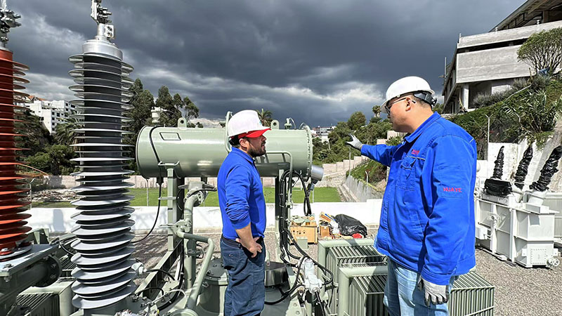 公司承接的厄瓜多爾國家電網(wǎng)重點項目,面對國際標(biāo)準(zhǔn)嚴(yán)苛、工期緊迫及高原運營三重挑戰(zhàn),全員晝夜攻堅:制造團隊三班倒作業(yè)提前15天完成生產(chǎn),厄方專家組駐廠監(jiān)造10天,確認(rèn)產(chǎn)品全項指標(biāo)達IEC最新標(biāo)準(zhǔn)。產(chǎn)品海運到達現(xiàn)場后,技術(shù)服務(wù)組48小時抵達3000米高原現(xiàn)場,頂著強烈高原反應(yīng)日夜奮戰(zhàn),在晝夜溫差超20℃的環(huán)境下連續(xù)作業(yè)8天(常規(guī)需13天),最終提前5日成功送電。實測空載損耗優(yōu)于合同要求5.2%,運行噪音低3dB,獲厄瓜多爾能源部長"中國制造典范"贊譽。此項目為南美市場樹立技術(shù)標(biāo)桿,彰顯華冶智造實力。